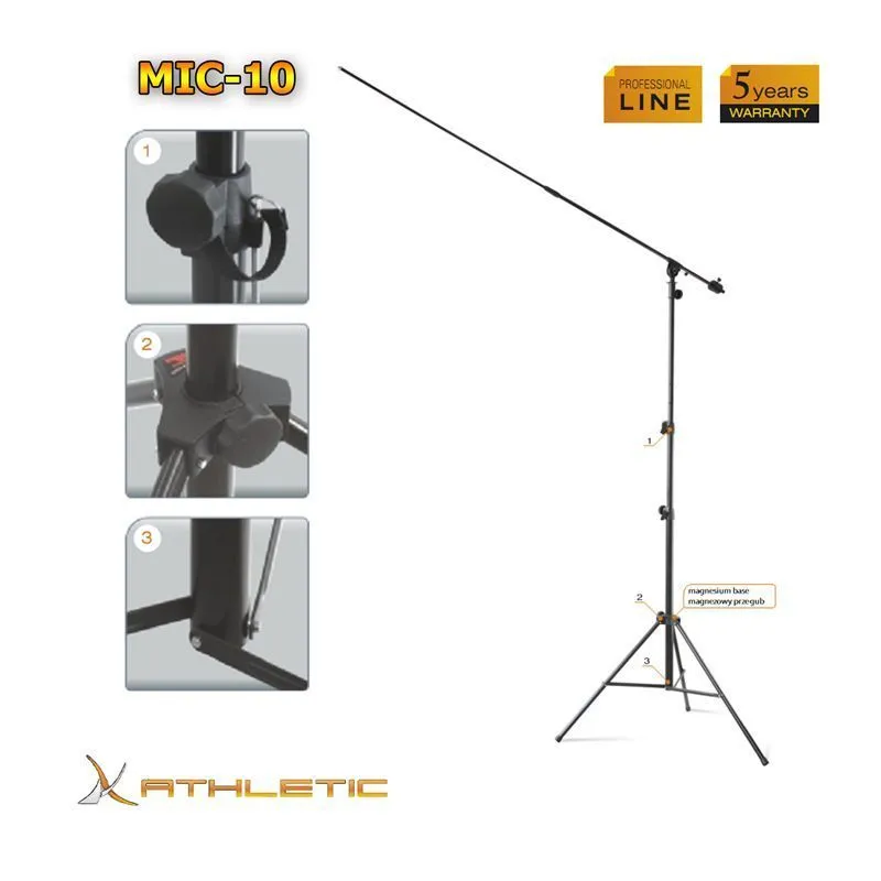 ATHLETIC MIC-10 - Профессиональная, высокая, суперустойчивая стойка для микрофона (журавль)