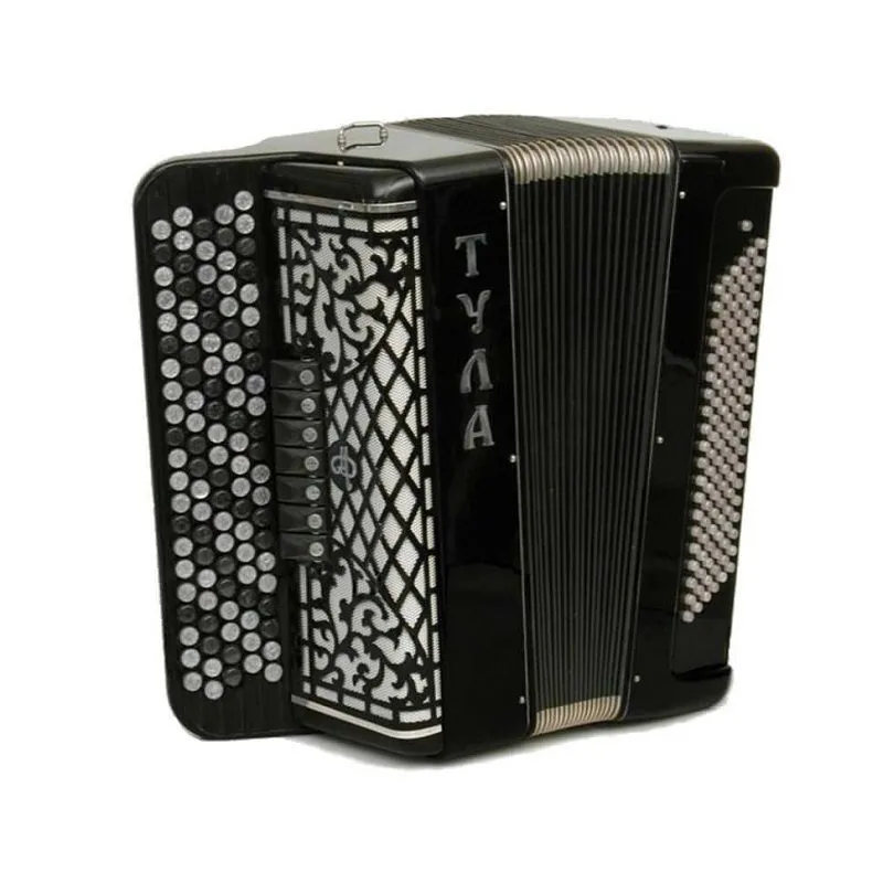 в левой части шестирядный готовый аккомпанемент от ноты МИ контроктавы до ноты РЕ-диез большой октавы с одновременным звучанием в четырех октавах.