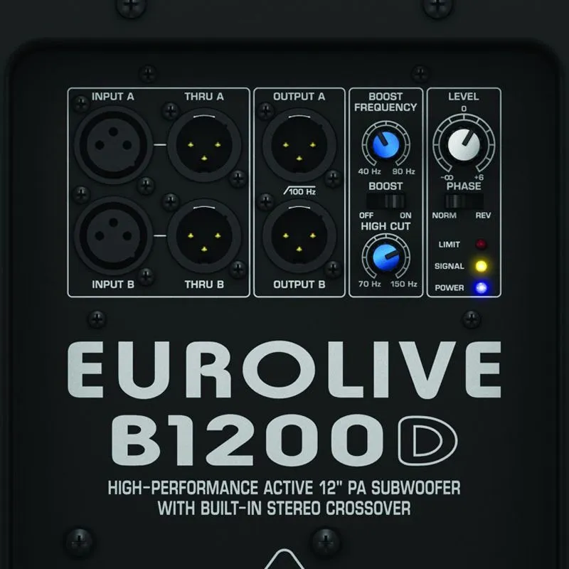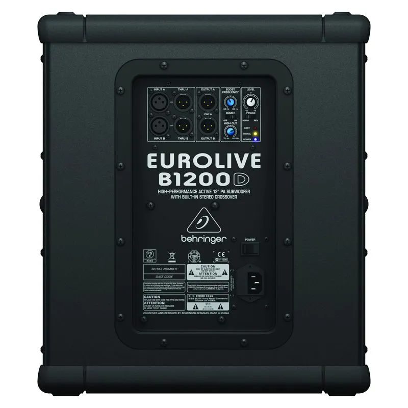 EUROLIVE B1200D-PRO – это универсальный и мощный сабвуфер, обладающий несколькими степенями защиты от превышения сигнала, перегрева и других проблем, возникающих из-за неправильного подбора компонентов аудиосистемы, и созданный на базе наиболее проверенных технологий Behringer. Эффективный встроенный усилитель обеспечивает сочность и насыщенность низкочастотной компоненты звука, а качественный и тщательно продуманный с точки зрения инженерии излучатель гарантирует хорошую слышимость во всём помещении, а не только прямо перед динамиком.