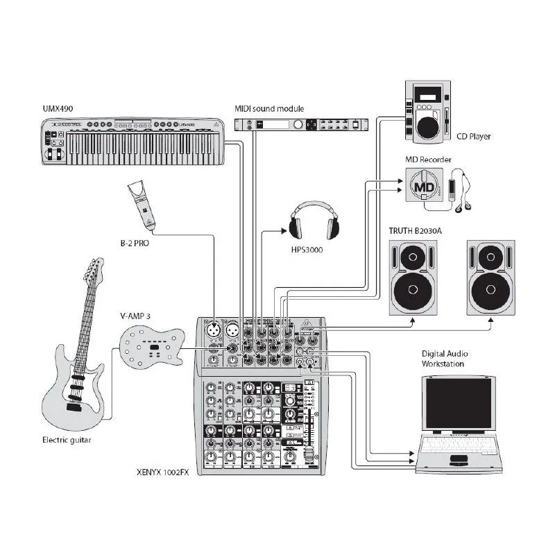 XENYX 1002FX имеет 10 входов и регулятор посыла FX Send в каждом канале. Также предусмотрены назначаемые входы CD/tape для гибкой маршрутизации. Новые микрофонные предусилители XENYX сопоставимы по качеству звука, прозрачности, запасу по перегрузке и динамике c элитным внешним микрофонным предусилителям.