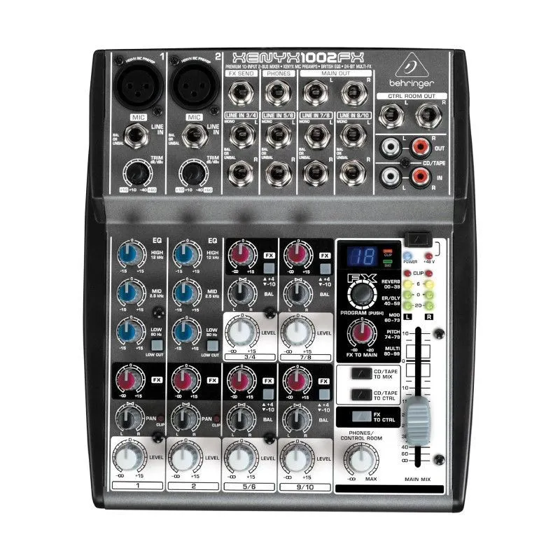 BEHRINGER XENYX 1002FX - Сверхмалошумящий аналоговый микшер премиум-класса c широким динамическим диапазоном, микрофонными предусилителями и 24-битным стереофоническим эффект-процессором студийного класса.