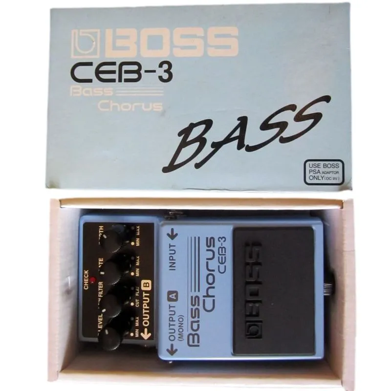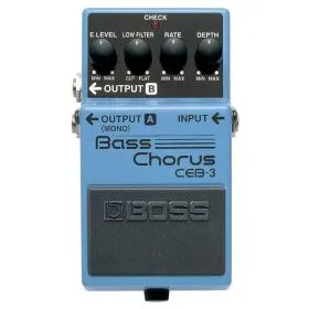 BOSS CEB-3 Bass Chorus - Эта хорус педаль специально приспособлена для электро-бас-гитары. Эффект добавляет пространственного богатства в верхнем частотном диапазоне, в то же время не загрязняя низкочастотный сигнал не замутняя атаку. Частота эффекта управляется при помощи ручки "low filter".