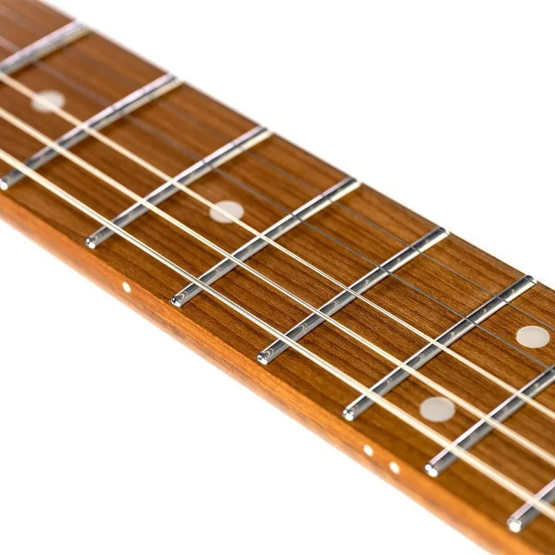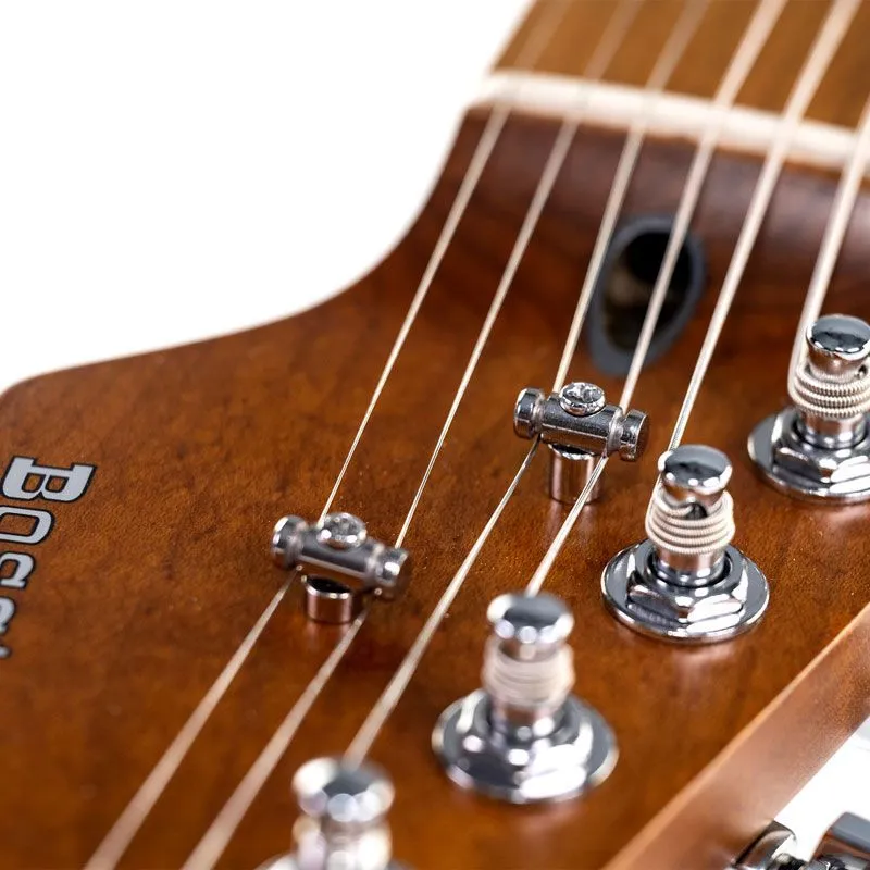 Электрогитара Bosstone SEG-04 с улучшенными звукоснимателями— это идеальный инструмент для музыкантов, стремящихся к качественному звучанию и комфорту в игре. С корпусом из тополя, эта гитара обеспечивает отличный баланс между легкостью и прочностью, что делает её удобной для длительных сессий.Гитара имеет гриф из обожженного клена. Двойной анкер, регулируемый с 4 мм болтом — обеспечивает стабильность грифа и возможность настройки под ваши предпочтения. Также гитара оснащена двумя синглами и хамбакером Alnico Little Giant SSF-1, что позволяет добиться разнообразного звучания, от чистого до мощного перегруза. Элегантно дополняет общий стиль гитары хромированная фурнитура.