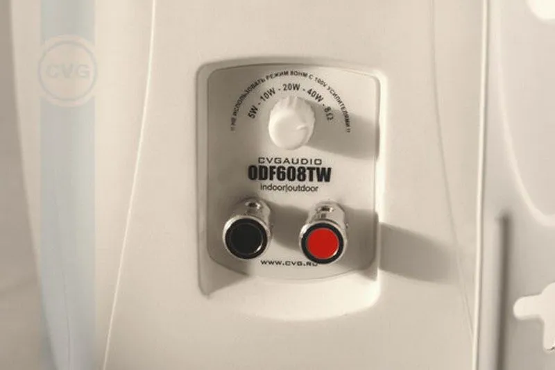 Отличительной чертой акустических систем серии ODF являются яркие и очень хорошо читаемые высокие частоты, что очень важно в системах фонового звука и определяет прозрачность и комфортность звучания. Это достигается за счет использования мощного купольного твитера размером 1”(24,5mm) из полиэфирамида (PEI) c металлическим напылением. Мощный вуфер с резиновым подвесом в моделе CVGaudio ODF608T изготовлен из полипропилена, имеет размер 6,5” (165mm) и благодаря крупному диффузору и мощной магнитной системе способен воспроизводить глубочие, качающие басы.