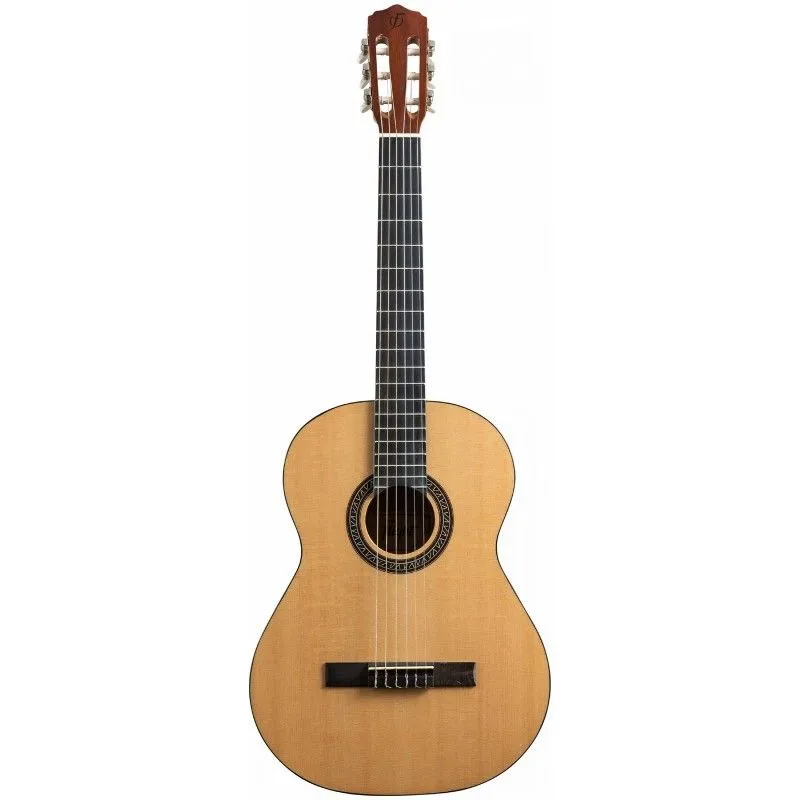 Верхняя дека изготовлена из ели, что обеспечивает чистое звучание, так необходимое для грамотного развития слуха. Нижняя дека и обечайки из сапеле, породы дерева по свойствам очень схожим с красным деревом, благодаря чему звук приобретает мягкость и глубину. Достаточно толстая, порядка 6 мм, накладка на грифе, выполненная из кабукалли, создает в руке ощущение приятной весомости и надежности.