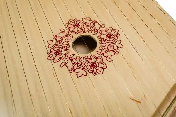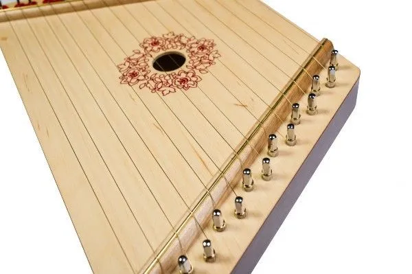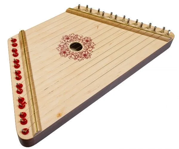 Гусли легко настроить прилагающимся в комплекте ключом: просто крутите колок по часовой стрелке если хотите натянуть струну или против часовой, что бы ослабить ее. Играть на гуслях можно как пальцами, так и медиатором входящим в комплект.
