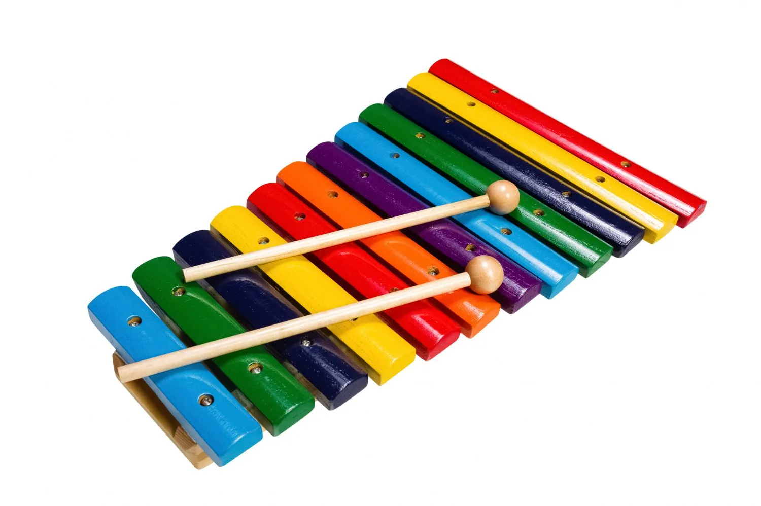 Ксилофон – ударный музыкальный инструмент, имеет древнее происхождение — простейшие инструменты подобного типа встречаются у разных народов Африки, Юго-Восточной Азии и Латинской Америки. В Европе первые упоминания о ксилофоне датируются началом XVI века. Представляет собой ряд деревянных брусков разной величины, настроенных на определённые ноты, по которым ударяют палочками. Инструмент может использоваться как соло, так и в ансамбле. Ксилофон поможет развить музыкальный слух ребенка, чувство ритма, и при этом настолько легок в применении, что даже у малыша, не владеющего нотами, обязательно получится мелодия.