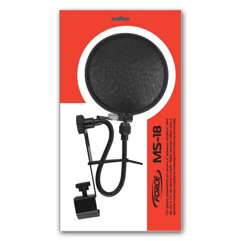 Двойной капроновый POP-фильтр с надежным креплением на микрофонную стойку, пантограф, или любую подходящую поверхность.
