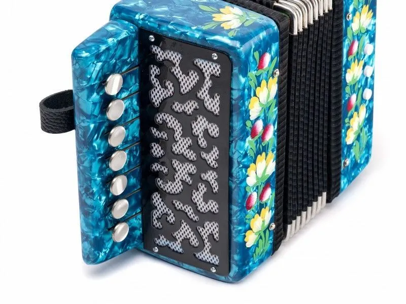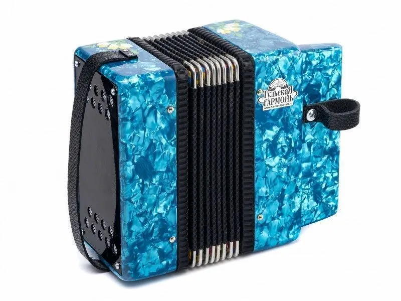 Гармонь - изделие народных художественных промыслов признанного художественного достоинства. Правый клавиатурный механизм имеет семь пуговиц, расположенных в один ряд.