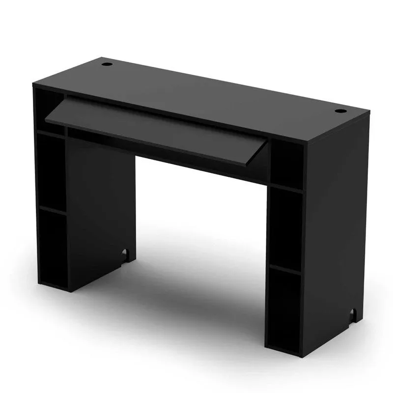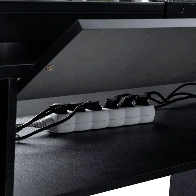Множество каналов, расположенных на верхней поверхности стола, во внутреннем пространстве стойки и на ее нижней панели, позволят вам незаметно спрятать кабели и вилки. Просторное отделение, оснащенное push-механизмом открывания, обеспечивает дополнительное место для хранения усилителей, блока розеток или запасного оборудования.