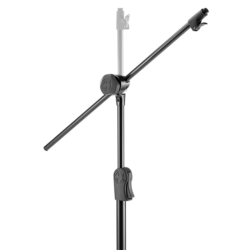 По многочисленных просьбам музыкантов Hercules выпустил новую универсальную раскладную стойку.Новое крепление позволяет одновременно изменять длину бума и угол его наклона, а также для удобства переноски позволяет хранить бум внутри стойки. Одним движением стойка превращается в стойку с бумом и обратно, что очень удобно для выступлений.