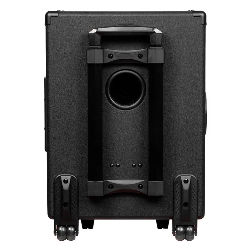 Беспроводной микрофон имеет диапазон до 50 метров. На всех входных соединениях имеется эквалайзер, а также возможность контролировать обратную связь и задержку. Существует также линейный выход. Возможность воспроизведения через USB или SD-карту, подключения через Bluetooth Вашего телефона, планшета или компьютера. Встроенные ручки и колеса, для удобства транспортировки, любой может быстро настроить PA с помощью одной из них.