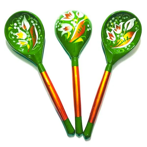 - Ложка с глубиной черпака около 1-1,5 см. и толстыми стенками. Подходит для использования в качестве музыкального и ударного инструмента. Расписана вручную, и покрыта прочным прозрачным лаком.