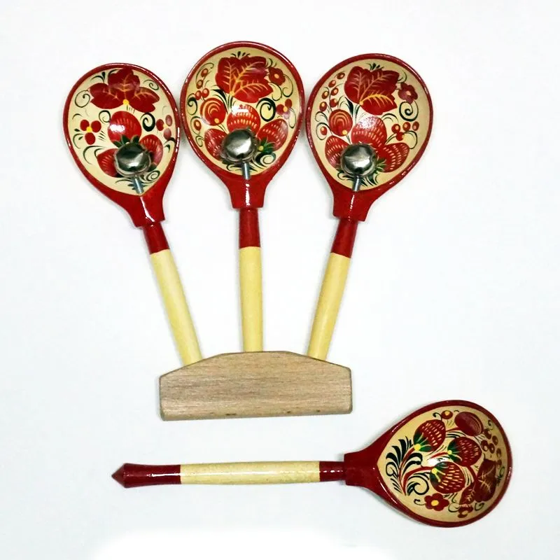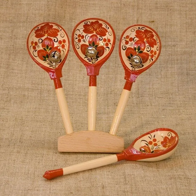 Кто и когда первый додумался превратить наши обыкновенные столовые ложки в ударный инструмент, сказать теперь совершенно невозможно. Но то, что это и прежде и теперь самый простой, самый колоритный и распространенный инструмент русского народа, - бесспорный факт. Наши расписные деревянные ложки популярны не только у нас, но и за рубежом. Тысячами вывозят их иностранцы к себе домой в качестве сувениров. Еще бы: легко, красиво, дешево и сразу "два зайца" - старинный предмет быта и он же - музыкальный инструмент. Деревянные ложки и половники можно купить в магазинах, на базарах или вырезать из сухого дерева самим. Есть народные мастера, специализирующиеся на изготовлении именно музыкальных ложек. Их изделия отличаются несколько большей толщиной, а значит, прочностью и большей звучностью; они используют лучшие породы древесины. Некоторые исполнители навешивают на ложки бубенчики, украшающие цокающий перестук дополнительным звоном.