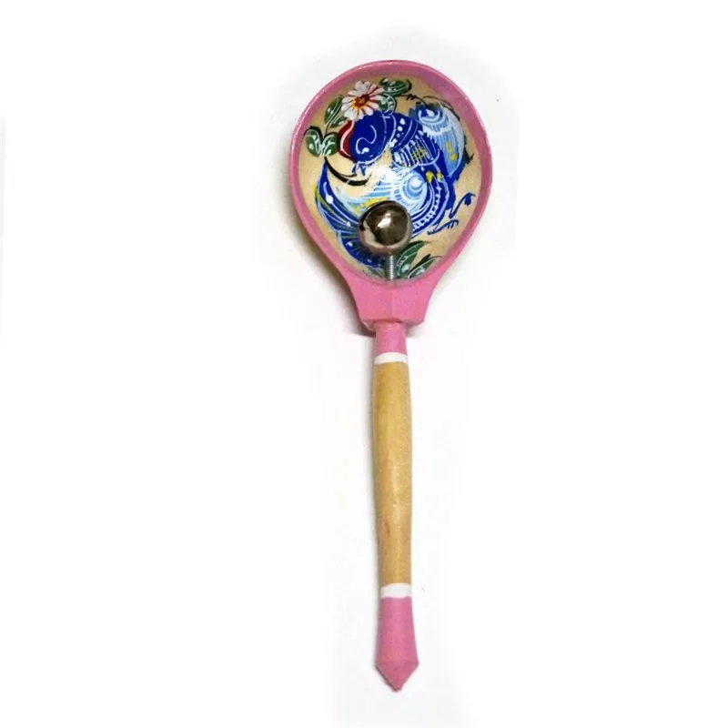Ложки с бубенцом (к2-лж-02) 2 категории представляют собой деревянные ложки, используемые в быту, с внутренней стороны черпака которых закреплен бубенчик.