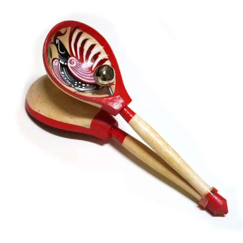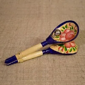 Кто и когда первый додумался превратить наши обыкновенные столовые ложки в ударный инструмент, сказать теперь совершенно невозможно. Но то, что это и прежде и теперь самый простой, самый колоритный и распространенный инструмент русского народа, - бесспорный факт. Наши расписные деревянные ложки популярны не только у нас, но и за рубежом. Тысячами вывозят их иностранцы к себе домой в качестве сувениров. Еще бы: легко, красиво, дешево и сразу "два зайца" - старинный предмет быта и он же - музыкальный инструмент. Деревянные ложки и половники можно купить в магазинах, на базарах или вырезать из сухого дерева самим. Есть народные мастера, специализирующиеся на изготовлении именно музыкальных ложек. Их изделия отличаются несколько большей толщиной, а значит, прочностью и большей звучностью; они используют лучшие породы древесины. Некоторые исполнители навешивают на ложки бубенчики, украшающие цокающий перестук дополнительным звоном.