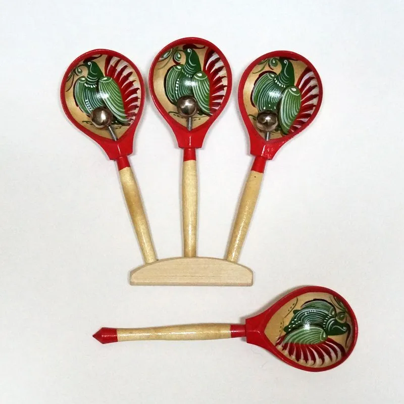 В комплект музыкального инструмента входи еще одна ложка. Она называется ИГРОВАЯ ложка. Представляет собой обычную деревянную ложку. Бубенчик в ней не предусмотрен.