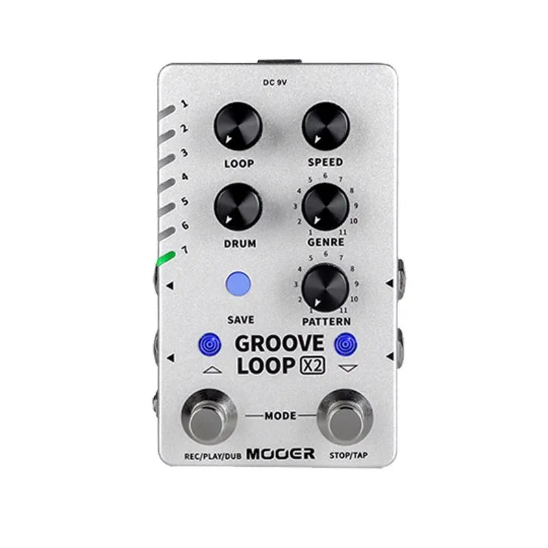 Дополнительные ручки включают отдельные регуляторы уровня громкости для записи и воспроизведения, а также ручку с 11 опциями для прокрутки банков песен. Два футсвитча предлагают знакомые элементы управления Looper, а для пользователей, желающих большего контроля, поддерживается внешний педальный переключатель, который может выполнять различные операции, такие как цикличное переключение между различными партиями текущего выбранного банка песен.