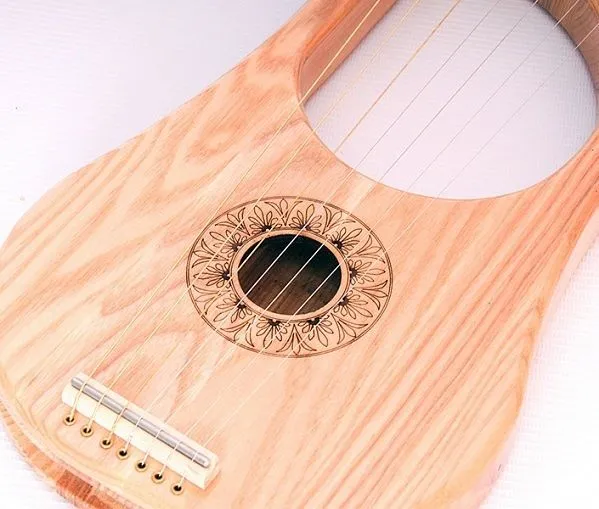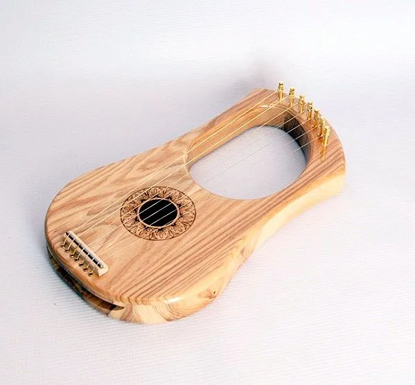 Лира 7-струнная, с резонаторным корпусом из массива ясеня, что дает теплый музыкальный звук с хорошим резонансом.