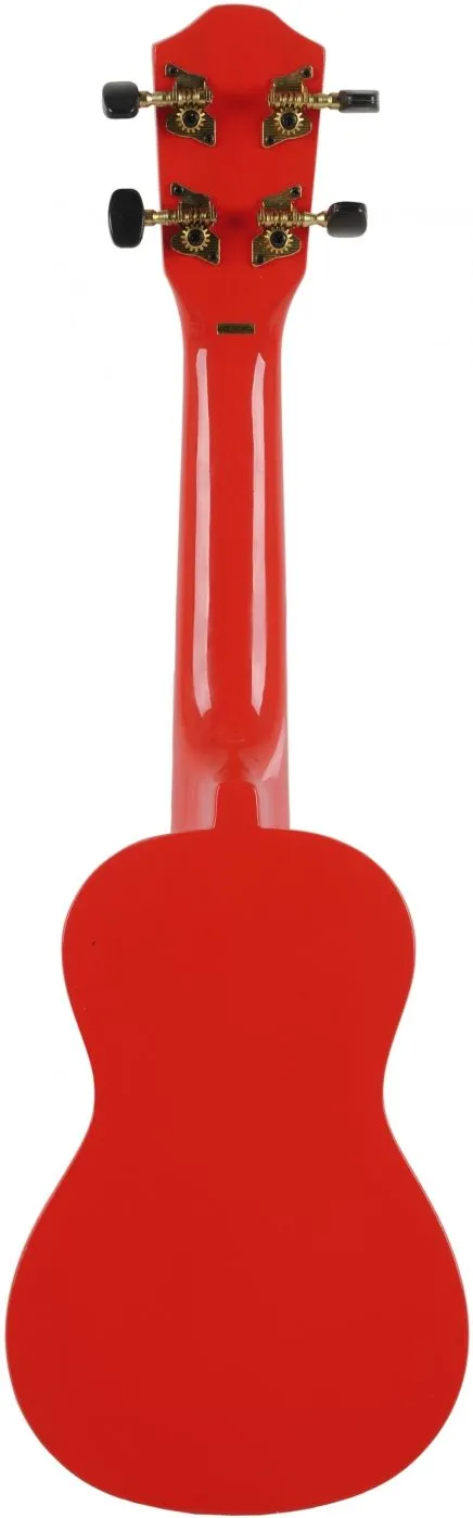 Корпус простой гитары укулеле сопрано Baton ROUGE NOIR BY BR NU1S – RD выполнен из клёна: это недорогой и качественный материал для гитар, и из него же сделан гриф, и даже накладка на гриф выполнена из цветного клёна. Отделка гитары это красный цвет в глянце. Колковый механизм – открытый в гитарном стиле с черными лепестками. Мензура традиционна для укулеле сопрано и составляет 340 мм. Верхний порожек – также традиционные 35 мм.