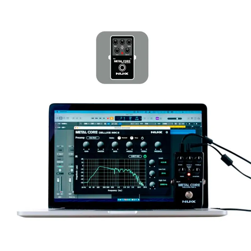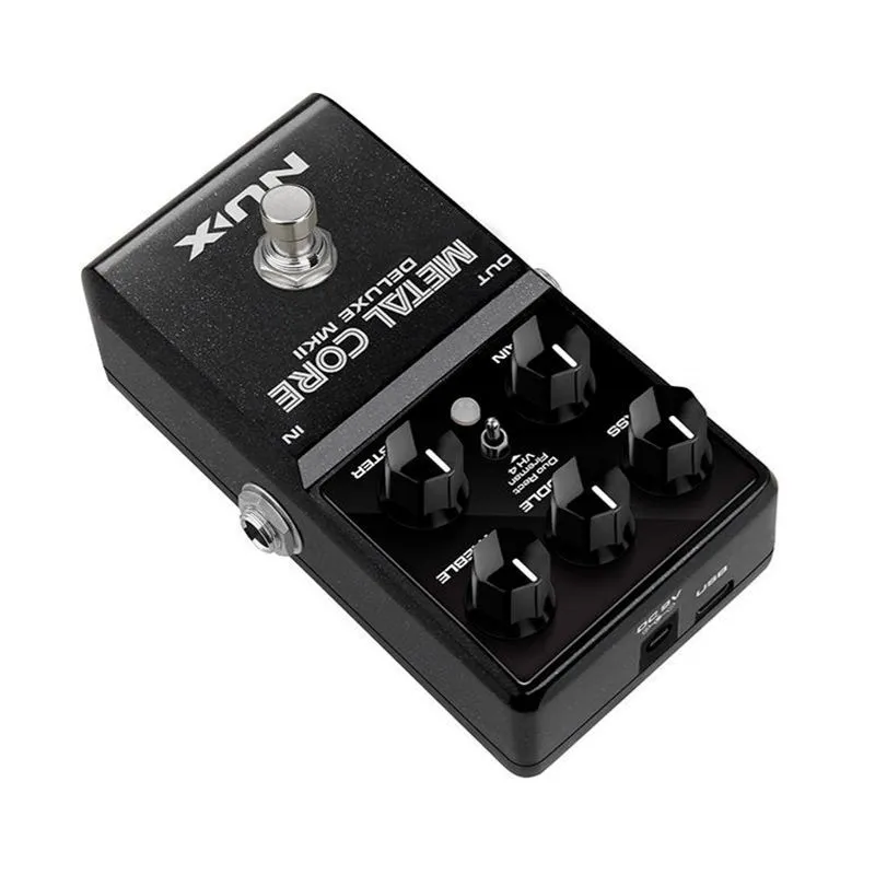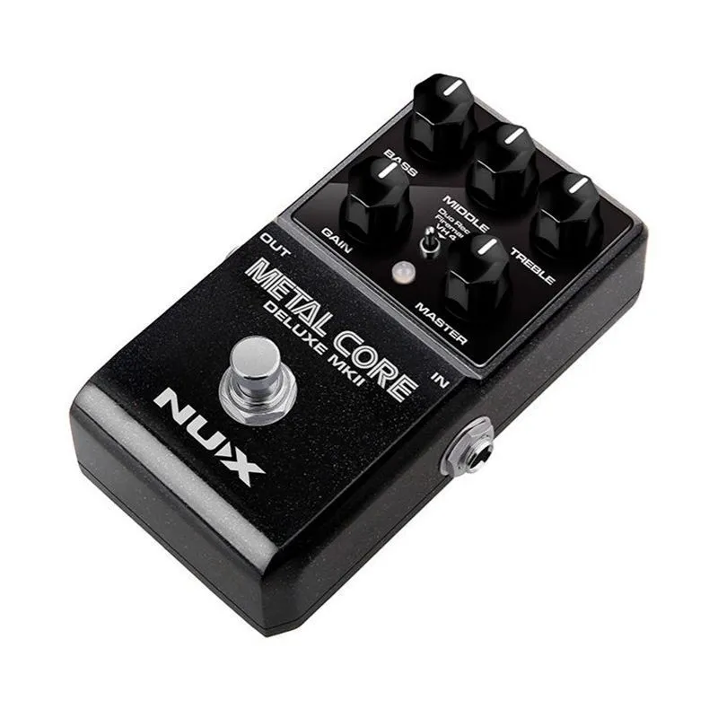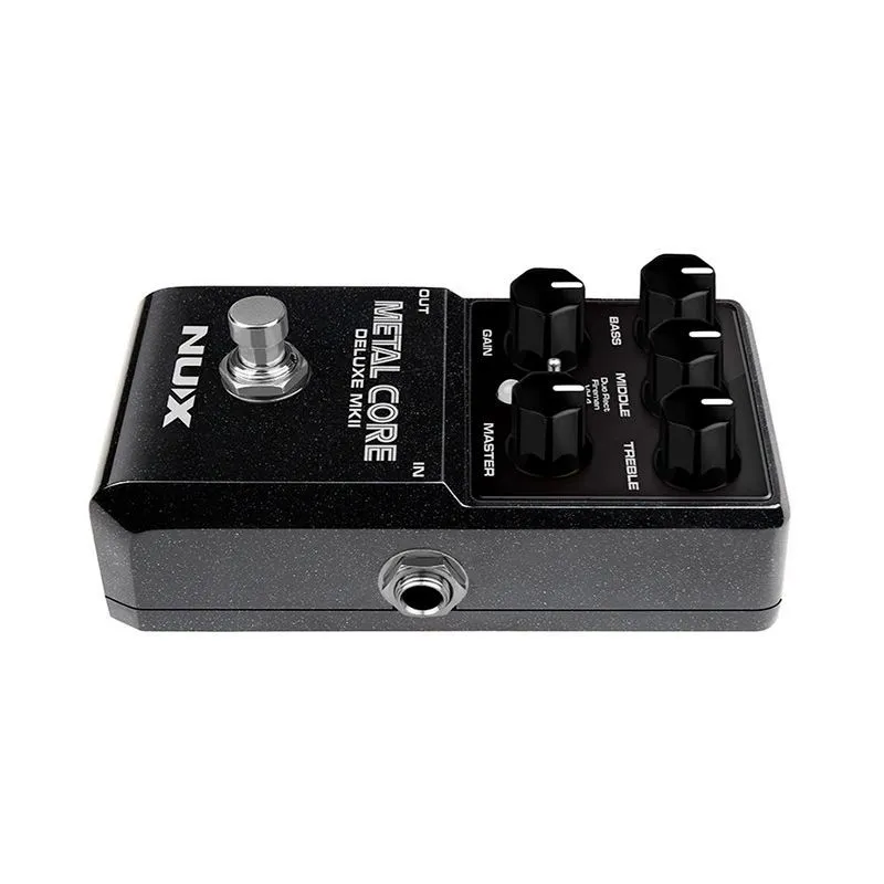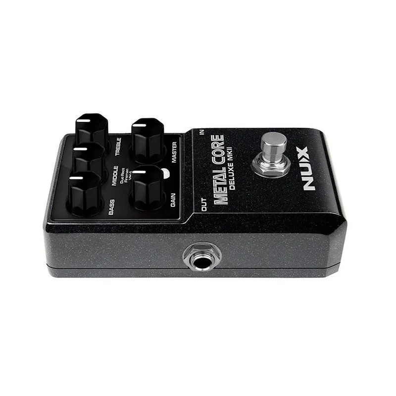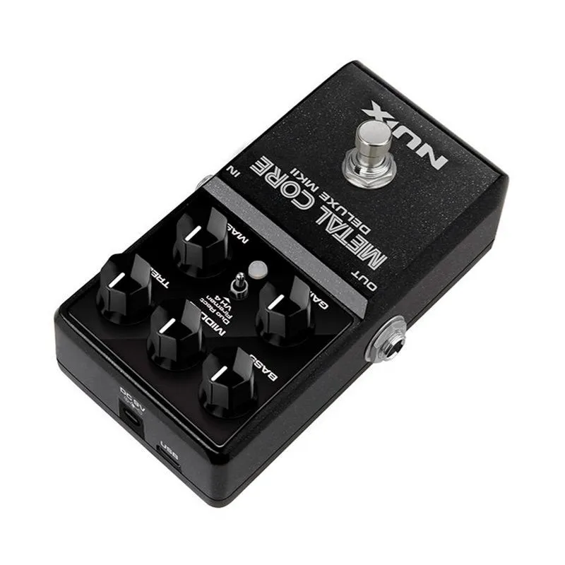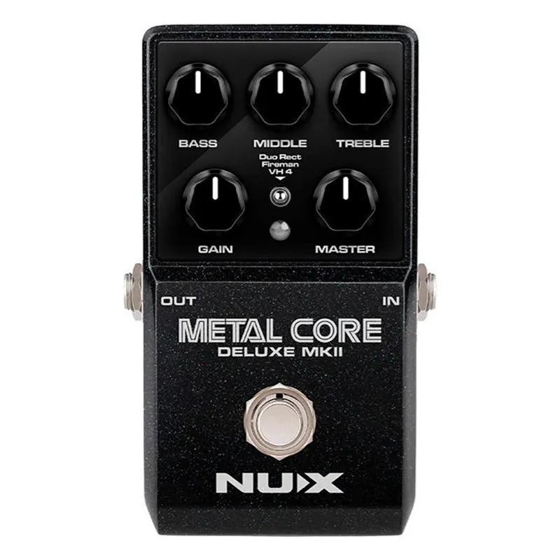 Metal Core Deluxe MkII – представитель новейшего поколения популярной серии гитарных педалей NUX В отличие от предыдущего поколения, это не просто педаль дисторшн, а «усилитель в коробке» — хайгейновый преамп с отключаемым спикерсимулятором на основе импульсной свёртки, загрузчиком импульсных откликов акустических кабинетов и встроенным гейтом. Устройство может работать как с гитарным усилителем, в обход его преампа (в гнездо «Return» возврата петли эффектов), так и в линию, напрямую в микшерный пульт или аудиоинтерфейс.NUX Metal Core Deluxe MkII моделирует канал перегруза трёх культовых хайгейновых гитарных усилителей: Mesa/Boogie Dual Rectifier, проявившего себя на множестве классических записей от трэш-метал до панка и гранджа; Friedman BE-100, воплотившего легендарный «коричневый звук» Эдди Ван Халена и Стиви Стивенса; и немецкого хайгейнового монстра Diezel VH-4 с плотным артикулированным «мясным» звучанием. При переключении моделируемых усилителей устройство запоминает все текущие настройки.