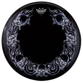 REMO Bass, POWERSTROKE, 22", "Tattoo Skulls On Black" - это фронтальный, однослойный пластик для большого барабана. Особенностью этого пластика является графика в виде рисунка из черепов на черном фоне. Пластик имеет прекрасный баланс средних частот, хороший отклик и насыщенное, динамическое звучание. Диаметр пластика составляет 22 дюйма. Это прочный, надежный и износоустойчивый пластик, который обеспечивает качественное звучание, великолепные средние и низкие частоты. Пластик прекрасно подойдет для новичков, любителей и профессионалов.