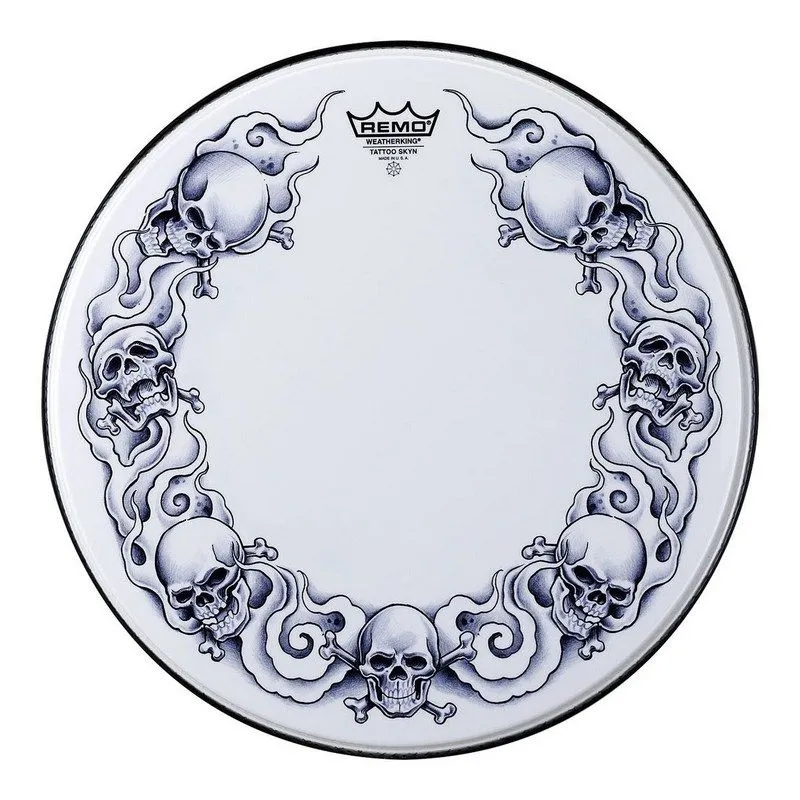 Особенность модели – это оригинальная монохромная графика в виде черепов на белом фоне, напоминающая татуировку, созданная Кори Миллером (популярное телешоу L.A. Ink). Такой пластик не только отличается надежностью и прекрасными звуковыми характеристиками, благодаря своему необычному внешнему виду он способен стать настоящей «визитной карточкой» барабанщика.