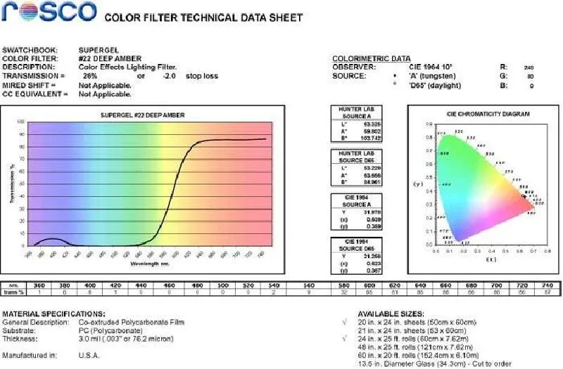 ROSCO SUPERGEL - Светофильтры пленочные на поликарбонатной основе. Состоят из трех сверхтонких дискретных слоев (цветного между двух бесцветных). Эта технология обеспечивает их самую высокую термоустойчивость по сравнению с другими сериями пленочных цветных фильтров.