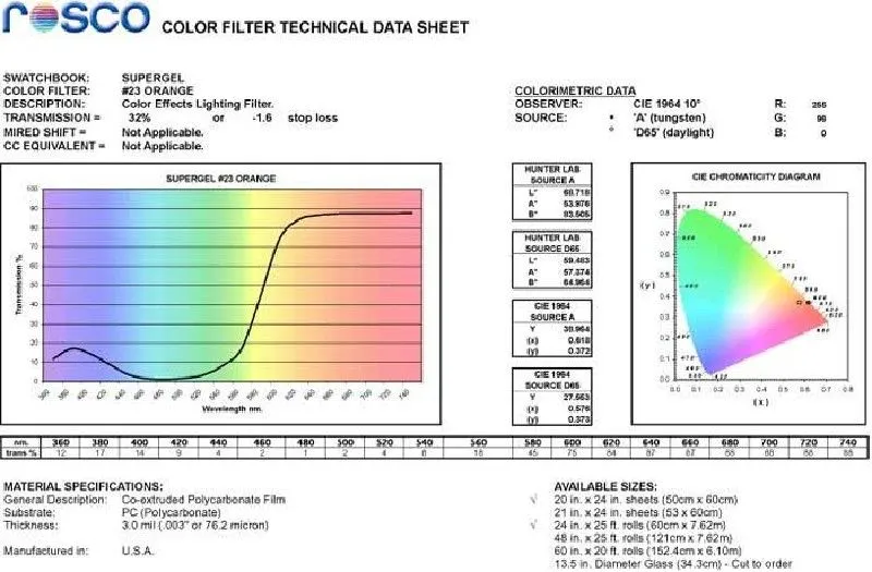 ROSCO SUPERGE - серия термостойких светофильтров, включающая более 130 цветов и более 30 диффузионных материалов.
