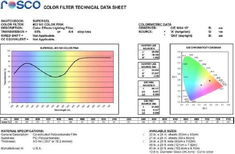 ROSCO SUPERGE - серия термостойких светофильтров, включающая более 130 цветов и более 30 диффузионных материалов.