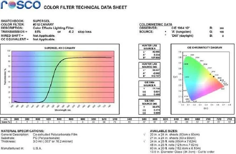 ROSCO SUPERGE - серия термостойких светофильтров, включающая более 130 цветов и более 30 диффузионных материалов.