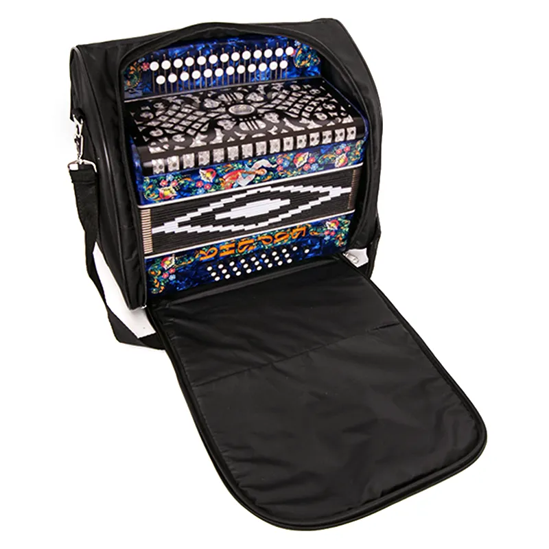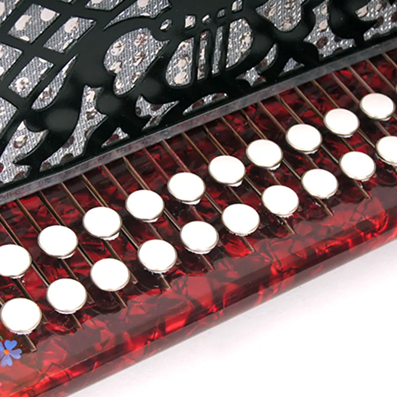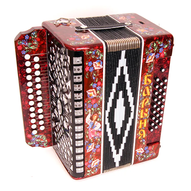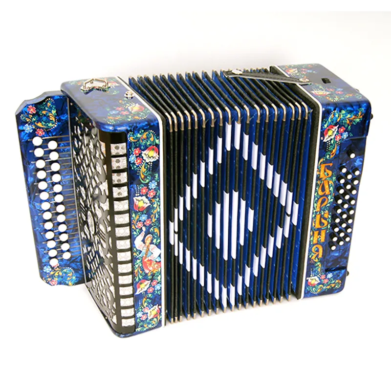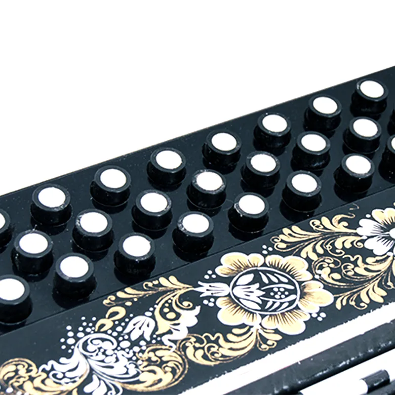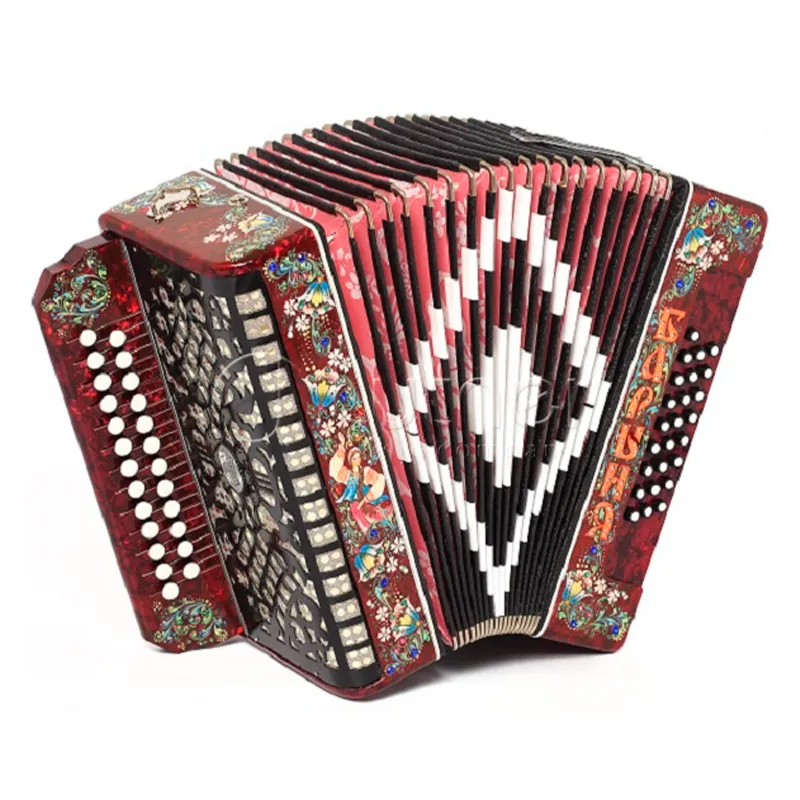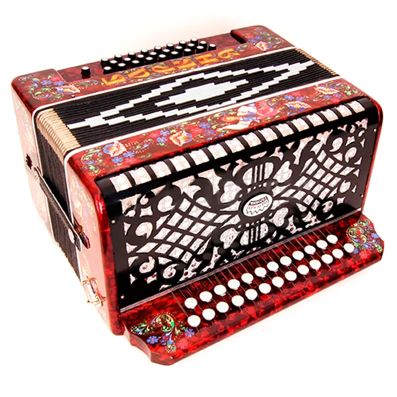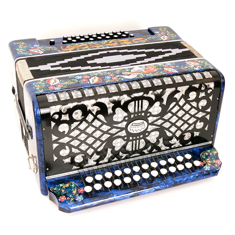 Четырехголосая гармонь без регистра, звукоряд основан на неполной хроматической гамме.Строй: До мажор.
