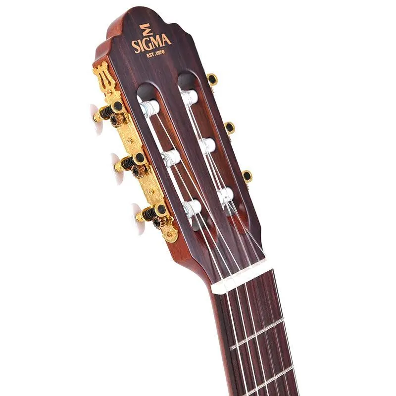 Sigma CM-2 - 6-струнная классическая гитара. Гитара оснащена верхней декой из массива кедра, а также нижней декой и обечайкой из красного дерева. Гриф выполнен из красного дерева, накладка – из палисандра. Порожек и седло выполнены из кости. На грифе 19 ладов без инкрустации. Модель оснащена позолоченными колками Deluxe с перламутровыми ручками. Гитара представлена в натуральном цвете с матовой отделкой. На инструменте установлены струны Savarez. Гитара станет отличным выбором для начинающих гитаристов, а также для тех, кто уже неплохо владеет инструментом.
