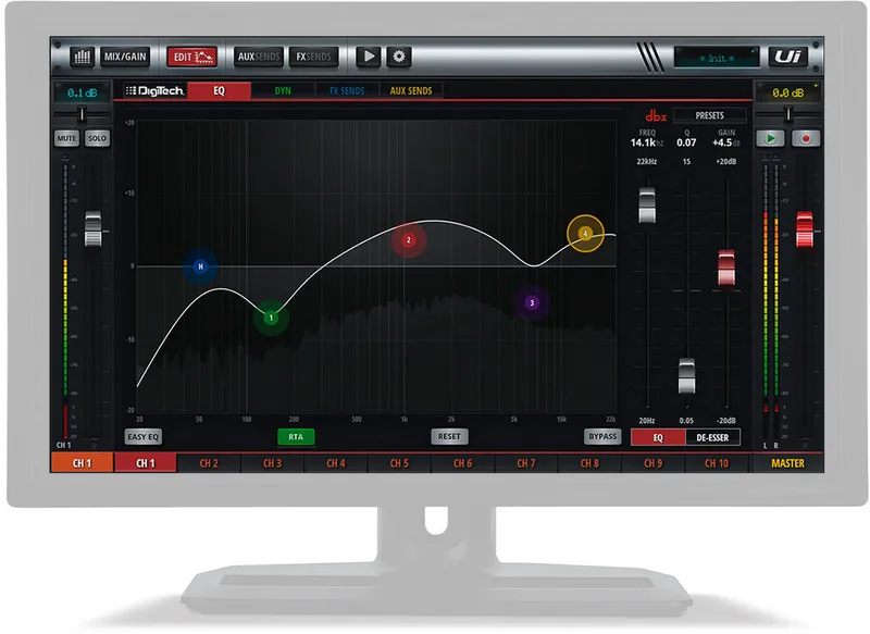 Серия микшеров Ui характеризуется межплатформной совместимостью с iOS, Android, Windows, Mac OS, и Linux устройствами и может использовать до 10 устройств управления одновременно.