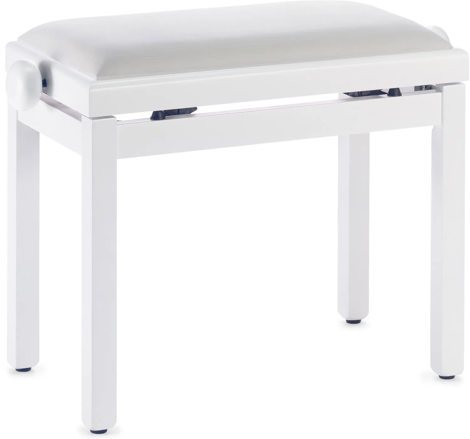 Матовая белая банкетка для занятий на пианино с белым бархатным верхом