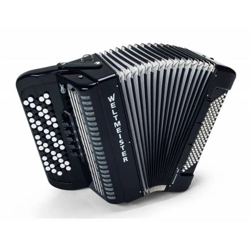 Левая рука, готовая клавиатура: 96 кнопки, 3 регистра, диапазон G - d'' #.м Голосов дискант: 3