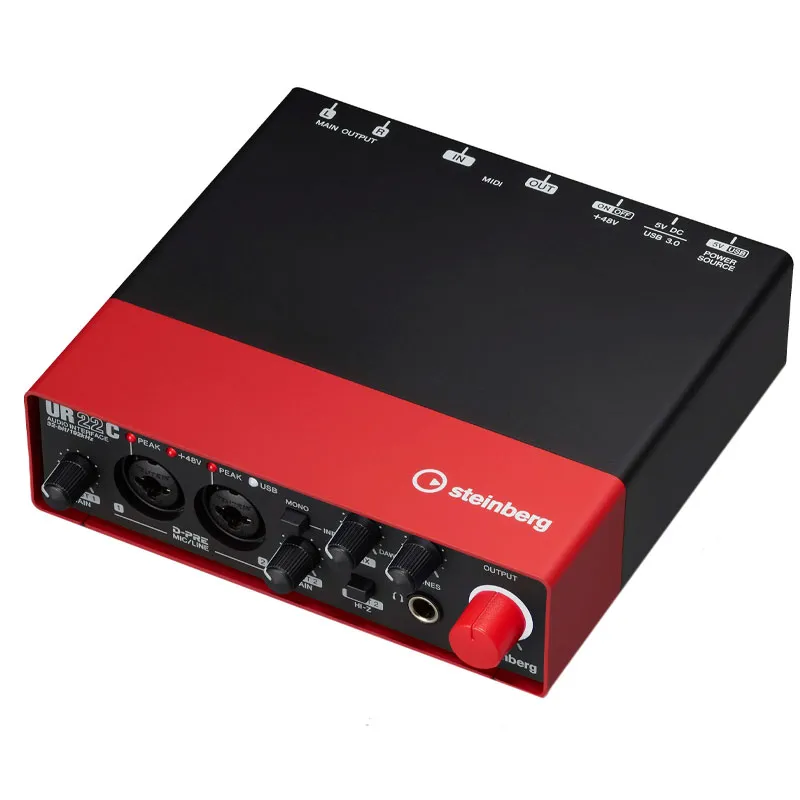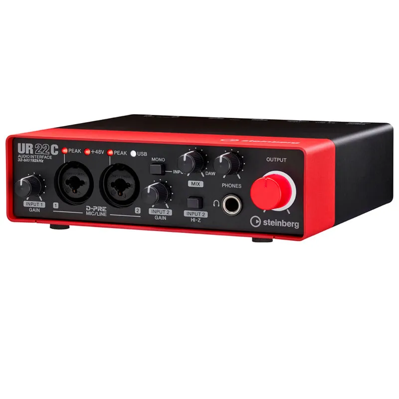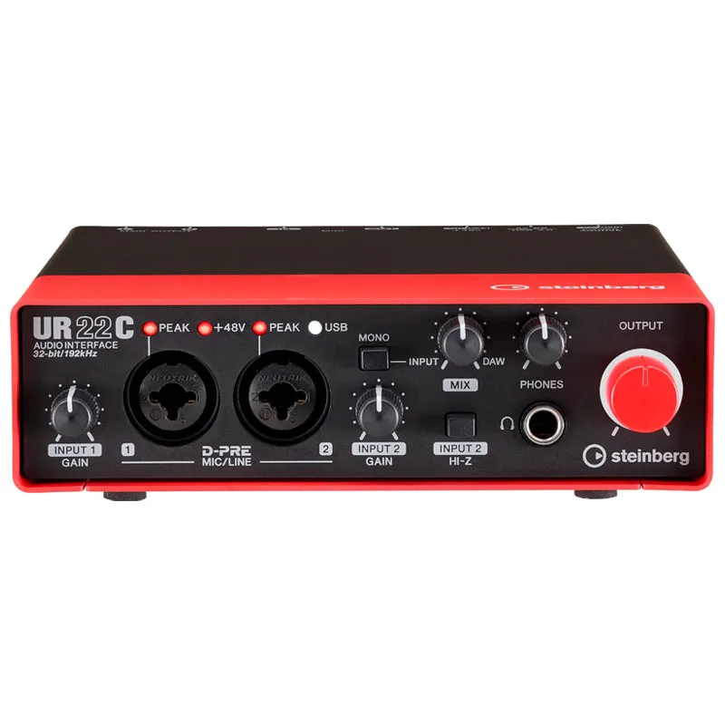 Steinberg UR22C — это компактный 2-канальный аудиоинтерфейс. Оснащен двумя высококачественными предусилителями D-PRE от Yamaha. Интерфейс поддерживает запись с разрешением до 32 бит/192 кГц, что позволяет получать аудиофайлы студийного качества. Устройство подключается через USB 3.1, что обеспечивает низкую задержку и высокую скорость передачи данных. UR22C совместим с iPad. Металлический корпус интерфейса гарантирует долговечность. Интерфейс совместим с Win, Mac и iOS-платформой, по протоколам передачи аудио WDM, Core Audio и ASIO. В наличии два входа mic/line, фантомное питание, MIDI-интерфейс, а также переключатель Hi-Z для подключения инструментов с линейным уровнем сигнала. Питается от шины USB или через адаптер питания 5В. В комплекте с аудиоинтерфейсом поставляются дистрибутивы Cubase AI и Cubasis LE, а также набор плагинов и VST-инструментов.